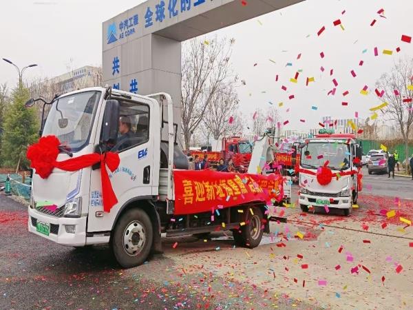 10时许,伊滨产业园接车仪式现场,6辆运输车整齐有序地驶入新厂区。